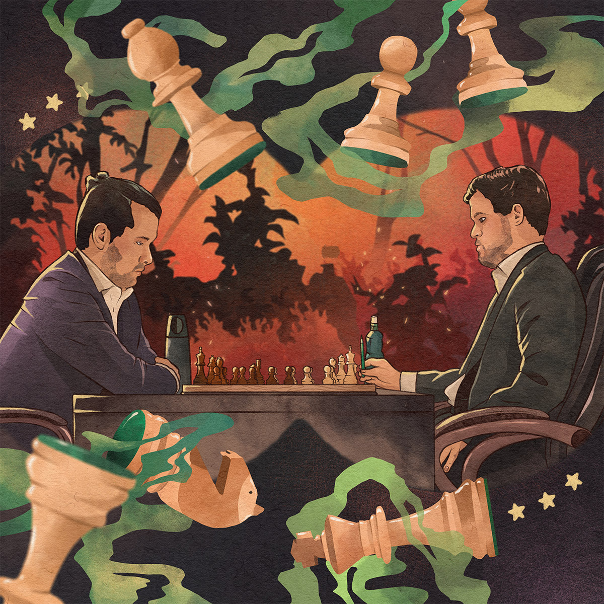 Personal illustration serving as a tribute to the Chess Championship 2021 between the world champion Magnus Carlsen and his challenger Ian Nepomniachtchi.