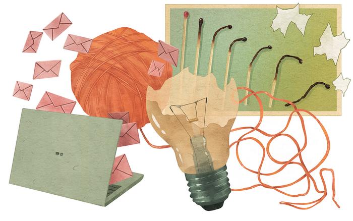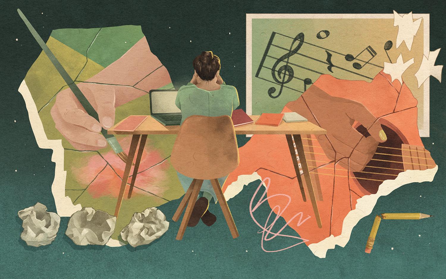 Series of illustrations for an essay about creative burnout and how to avoid it.