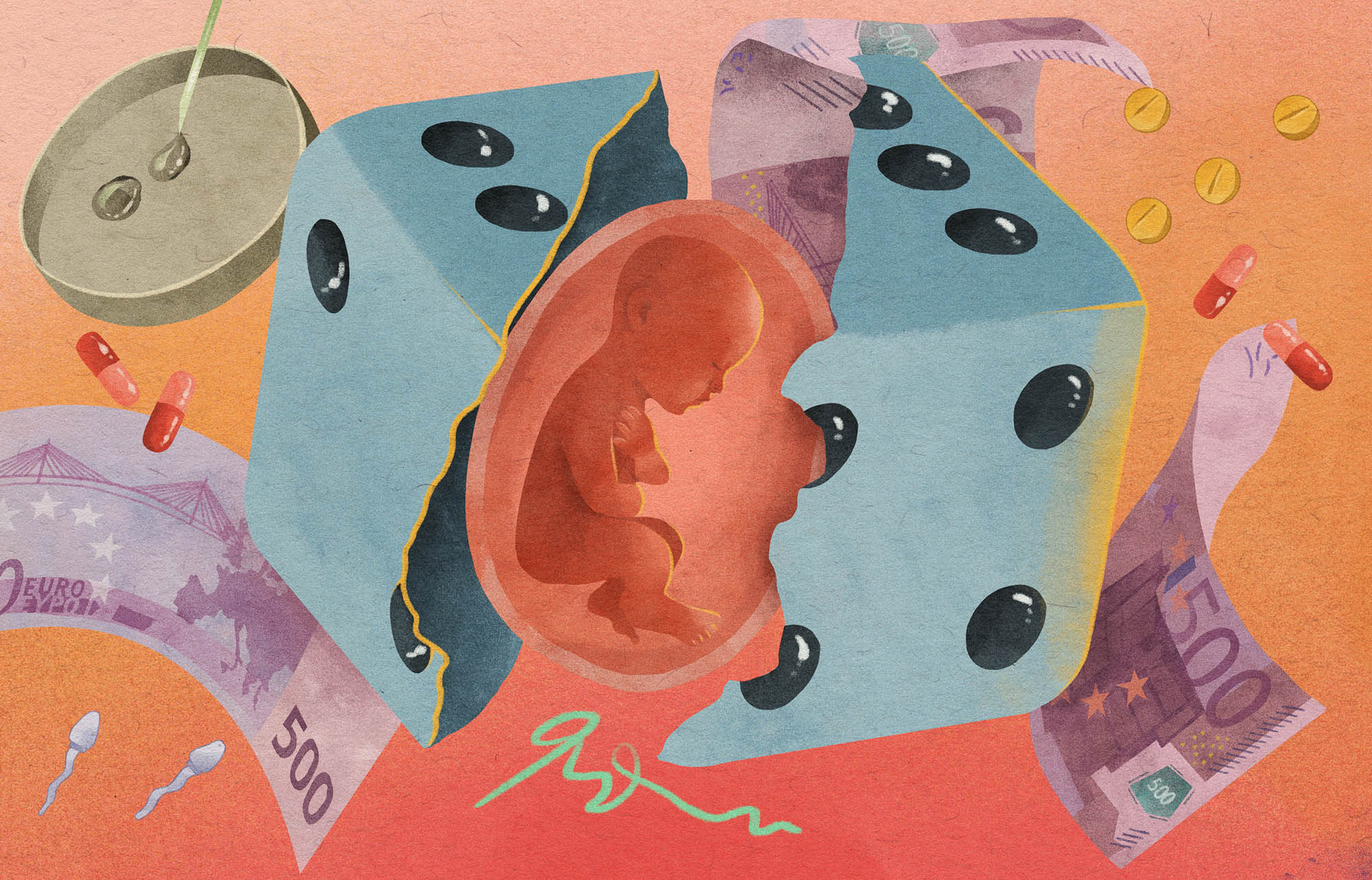 Editorial illustrations for a series of essays covering different aspects of Reproductive Medicine: from letting go of the desire to have children to freezing your eggs.
